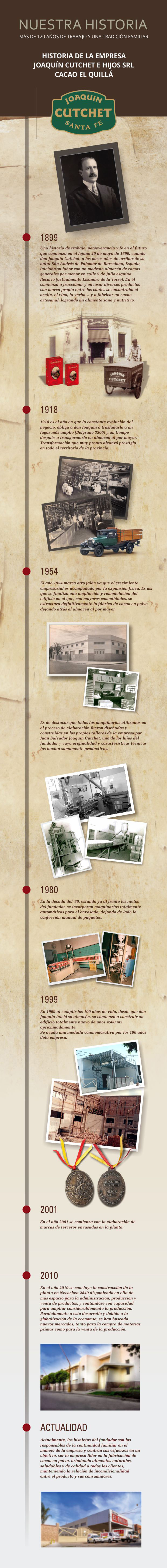 Una historia de trabajo, perseverancia y fe en el futuro que comienza en el lejano 20 de mayo de 1899, cuando don Joaquín Cutchet, a los pocos años de arribar de su natal San Andrés de Palomar de Barcelona, España, iniciaba su labor con un modesto almacén de ramos generales por menor en calle 9 de Julio esquina Rosario (actualmente Lisandro de la Torre). En él comienza a fraccionar y envasar diversos productos con marca propia entre los cuales se encontraba el aceite, el vino, la yerba… y a fabricar un cacao artesanal, logrando un alimento sano y nutritivo.